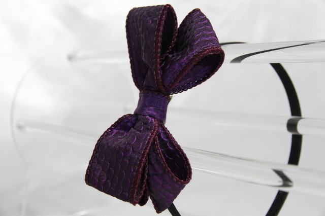 上品な光沢と立体感のあるドイツ製リボンを使用しています。 ぽこぽことしたパイソン柄のような楕円が織り込まれて程よい光沢感があります。