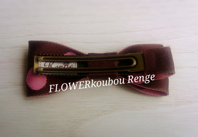 ダブルフェイスドットリボン・クリップ (前髪用・サイド用) Rosa ball ローザボール のブラウンベース ドイツ製ダブルフェイスリボン。 なめらかでしっかりとした厚みがあります。 クリップ幅6cm、リボン幅約7cm