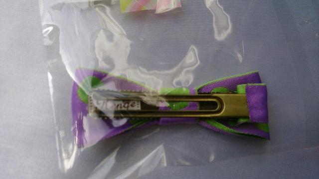 ダブルフェイスドットリボン・クリップ (前髪用・サイド用) Violett ball ヴァイオレットボール の紫ベース ドイツ製ダブルフェイスリボン。 なめらかでしっかりとした厚みがあります。 クリップ幅6cm、リボン幅約7cm
