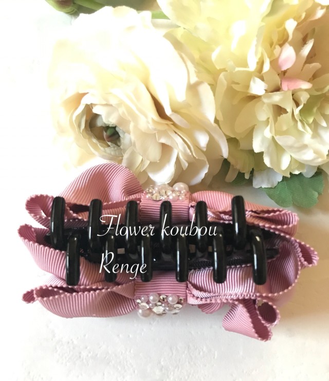 バンスクリップ Ricco リッコ 高級グログランリボン×ストーンデコレーション 豪華です 高級MOKUBAリボンをたっぷり使用して、さらに中央にストーンをデコレーションいたしました。お洗濯も可能なほど丈夫なグログランリボンです。(クリップはお洗濯しないでくださいね) クリップは一般的なサイズ9cm(Mサイズ)です。髪のボリュームに合わせて7cm(Sサイズ)に変更も可能です。 ハーフアップ、ポンパドールなどのヘアスタイルにお使いください。