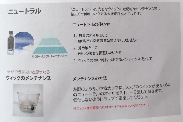 燃焼しにくくなってきた場合は フレグランスオイルのニュートラルをお求めになってメンテナンスをお願い致します。ウィック(芯)の交換という方法もあります。お気軽にご相談ください。